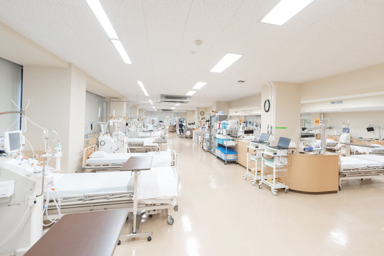 現在の透析患者さんは約200名、維持血液透析だけでなく、慢性腎不全患者の透析導入や急性腎不全の治療、神経免疫疾患、膠原病にたいしての血液浄化療法も行っています。総合病院のメリットを生かした透析療法を提供していきたいと考えています。